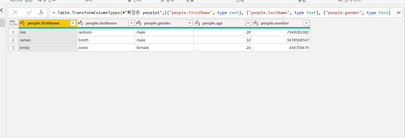 파워쿼리가 JSON 파일을 가져올 때 자동으로 데이터를 변화해준다.